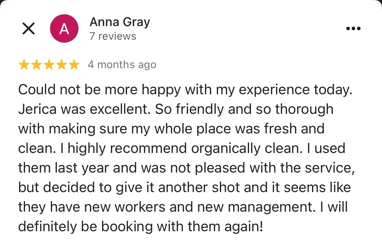 “Every corner was cleaned with care, and I genuinely feel good knowing my home is clean.”